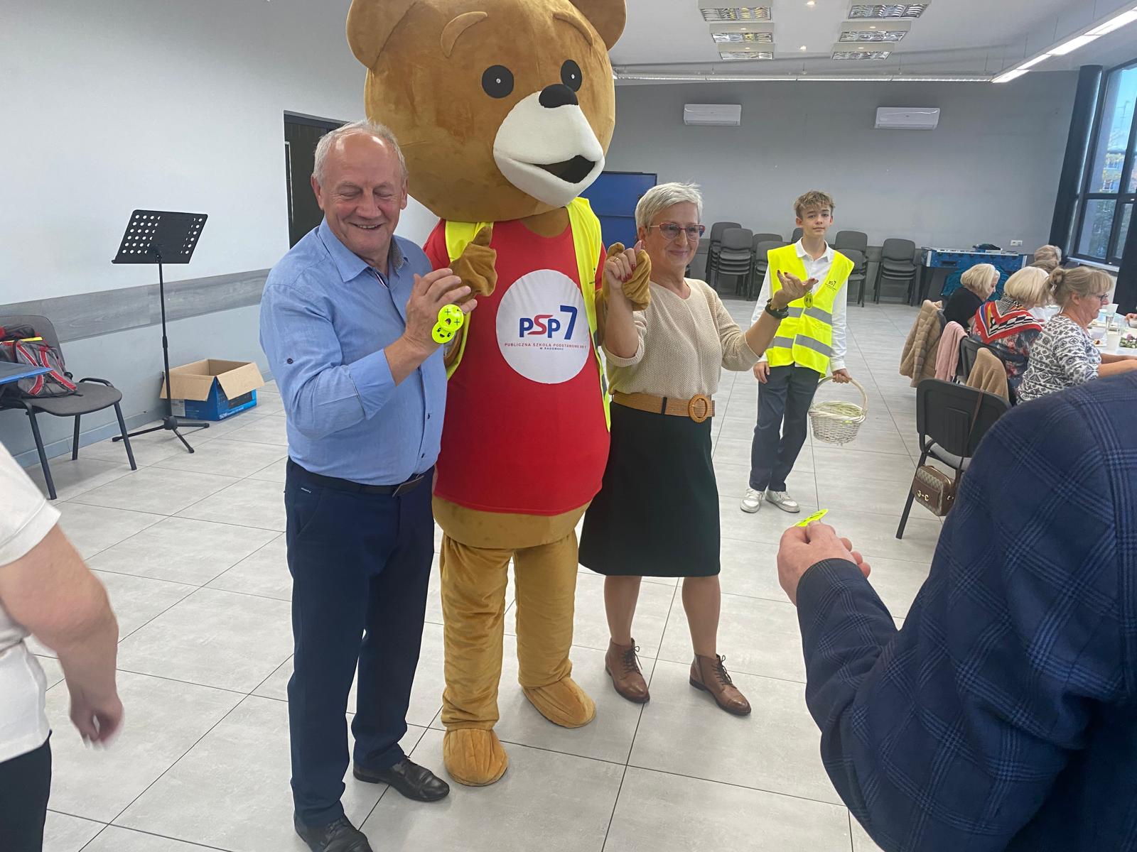 Naszym wyjątkowym towarzyszem był Miś Trauguś, który z radością wręczył drogim Seniorom odblaskowe gadżety – symbole troski o bezpieczeństwo i widoczność na drodze. Życzymy wszystkim szerokiej i bezpiecznej drogi – pieszo, na rowerze czy autobusem. Pamiętajmy, że najważniejsze jest zawsze szczęśliwie wrócić do domu. Dbajmy o siebie, świećmy przykładem – dosłownie i w przenośni – a każda nasza droga niech kończy się uśmiechem.