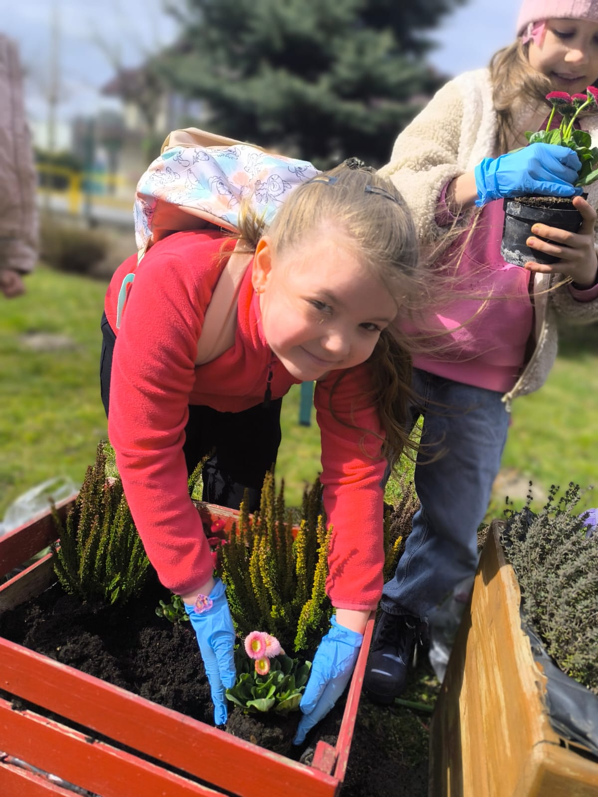 Na zakończenie dnia zasadziliśmy stokrotki w naszej klasowej skrzynce pod szkołą. Niech rozkwitają i wprowadzają do naszego otoczenia jeszcze więcej wiosennej radości.