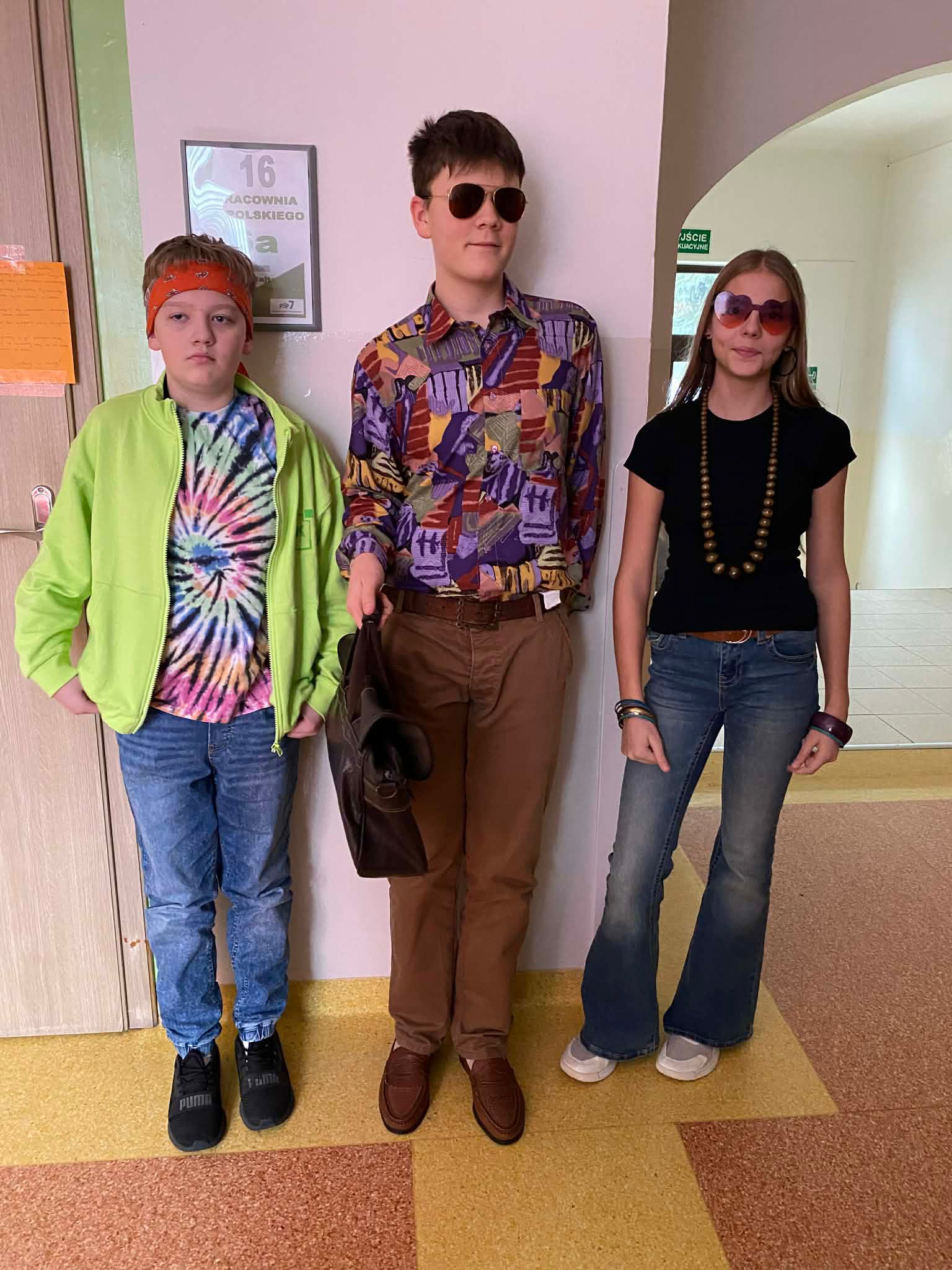 Uczniowie i nauczyciele założyli stroje nawiązujące do lat 70.