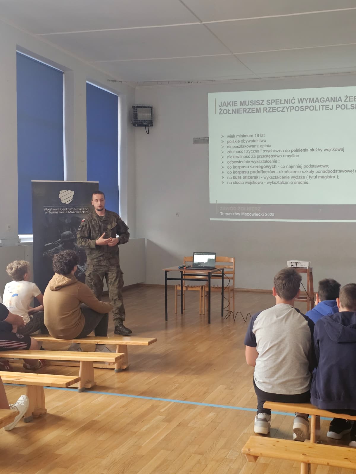 Dnia 29 września 2025 roku przedstawiciel Wojskowego Centrum Rekrutacji w Tomaszowie Mazowieckim spotkał się z uczniami klas 7 i 8 PSP 7 w Radomsku.