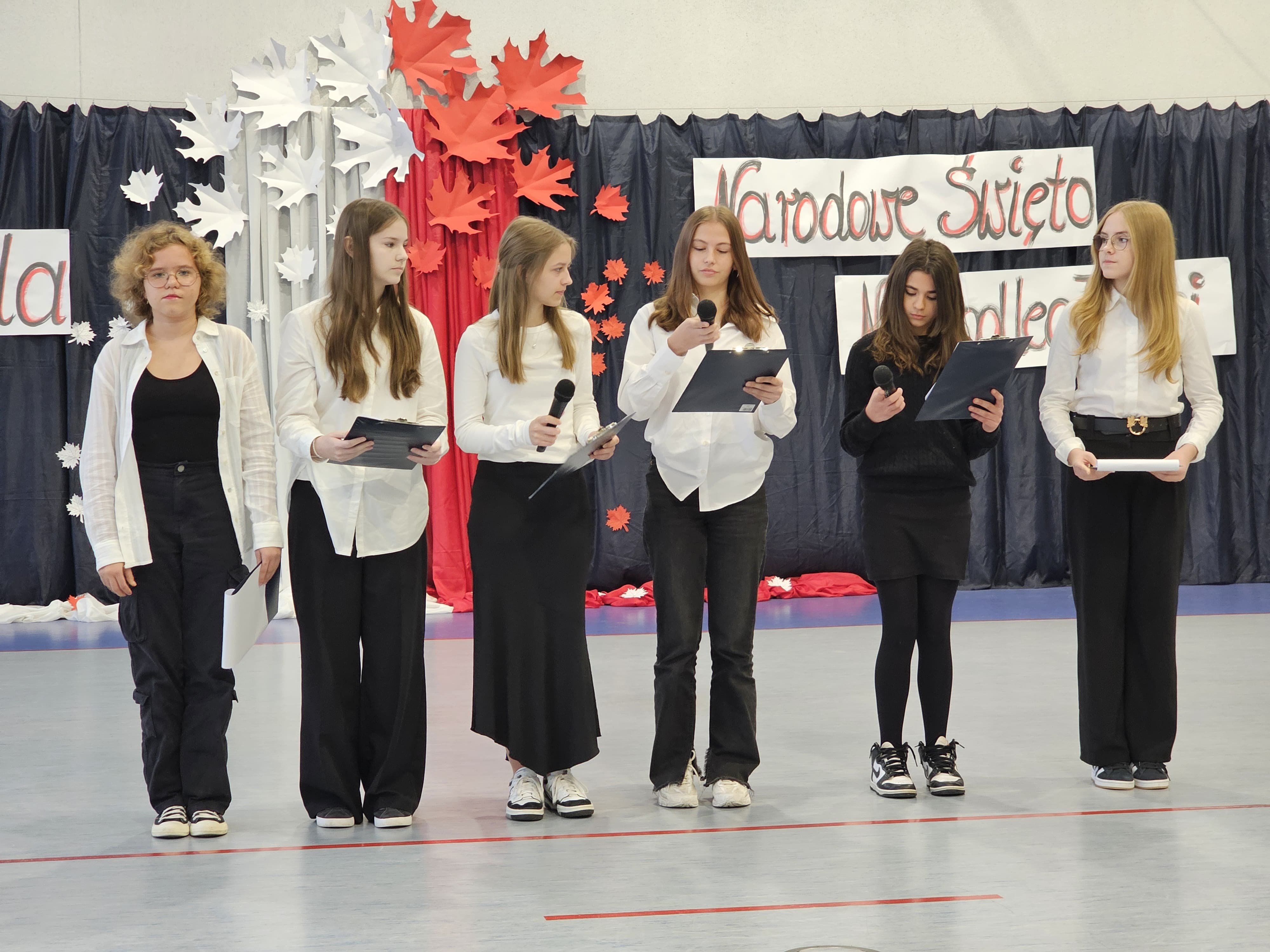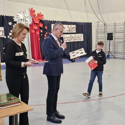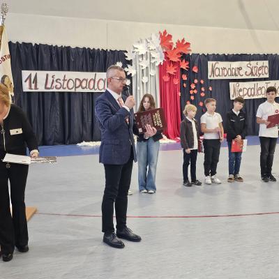 Akademia z okazji Narodowego Święta Niepodległości odbyła się w naszej szkole w środę 13 listopada 2024 roku. Podczas uroczystości uczniowie przypomnieli najważniejsze wydarzenia historyczne związane z walką o niepodległość naszego kraju. Tegoroczna akademia miała formę koncertu, podczas którego usłyszeliśmy utwory o tematyce patriotycznej takie jak: „Jest takie miejsce – Polska”, „Co to jest niepodległość”, „Taki kraj”, „Walczyk”, „Dziś idę walczyć mamo” i „Jaskółka uwięziona”. Zaśpiewali je: Malwina Piorun, Patrycja Łyp, Maja Zielińska, Blanka Nowińska i Aleksandra Rak. Ważnym punktem uroczystości był taniec z białymi i czerwonymi szarfami w wykonaniu uczennic klasy 5A. Koncert poprowadziły: Lena Ciupińska, Patrycja Łyp, Maja Wiecha i Maja Zielińska. Akademia była cenną lekcją historii i patriotyzmu.
