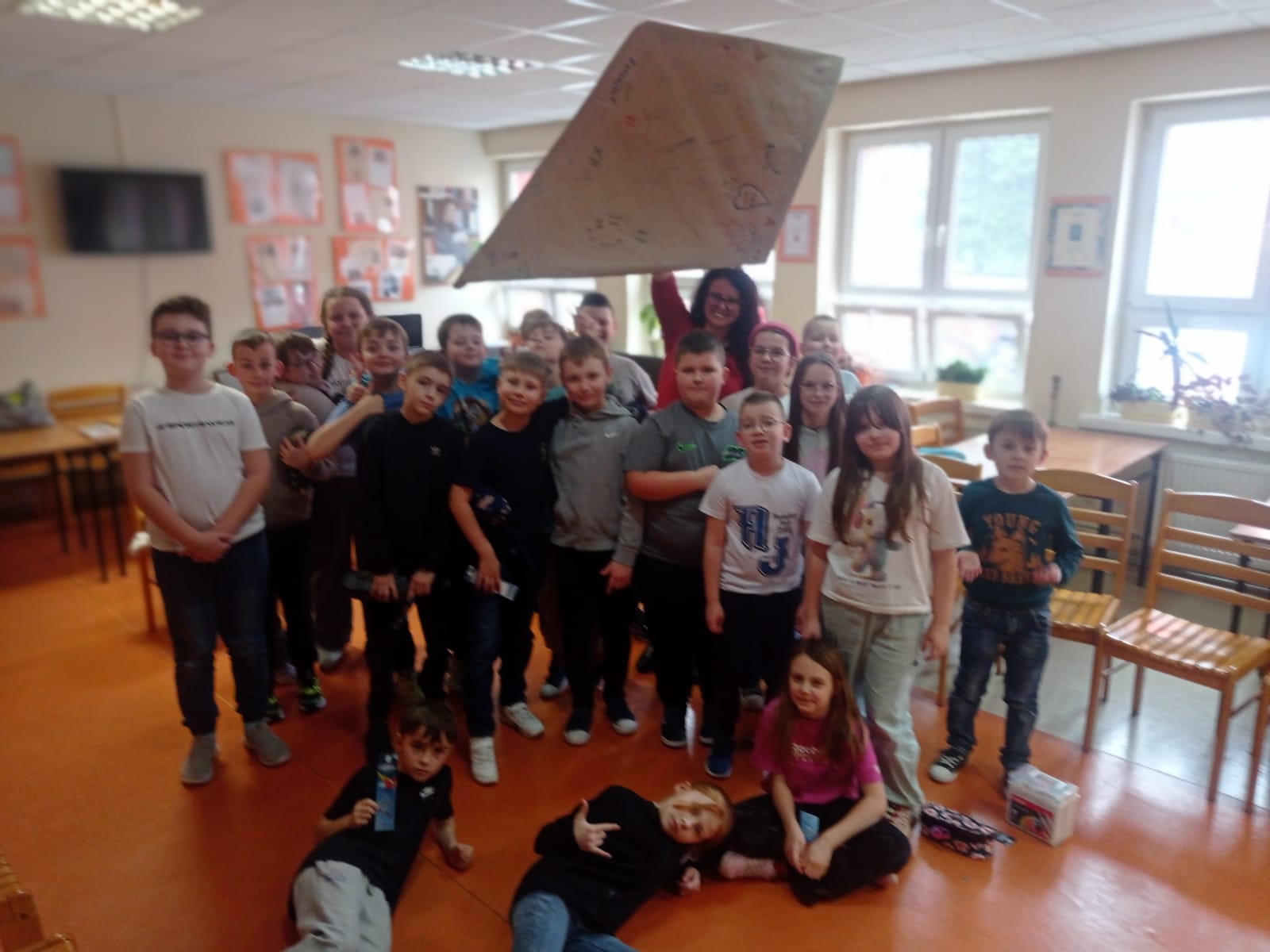 Podsumowaniem warsztatów było wspólne wykonanie Latawca Przyjaźni. Uczniowie klasy 3b z radością i zaangażowaniem wykonywali zaproponowane zadania i pięknie podziękowali pisarce za przeprowadzone warsztaty.