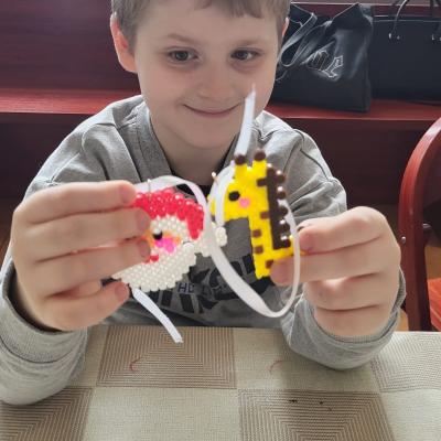 Dzisiaj dzieci z klasy II B wybrały się na "Warsztaty tworzenie ozdób bożonarodzeniowych" do Muzeum Regionalnego w Radomsku. Stworzyły własnoręczne ozdoby na choinkę z koralików DIY. Przy okazji wykonywania ozdób bożonarodzeniowych dzieci również ćwiczyły:
