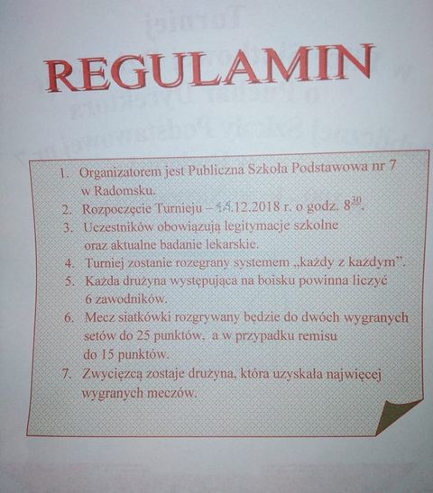 11 grudnia odbędzie się w naszej placówce turniej w Piłce Siatkowej Dziewcząt o Puchar Dyrektora Publicznej Szkoły Podstawowej nr 7 w Radomsku w 100-lecie Niepodległości.
