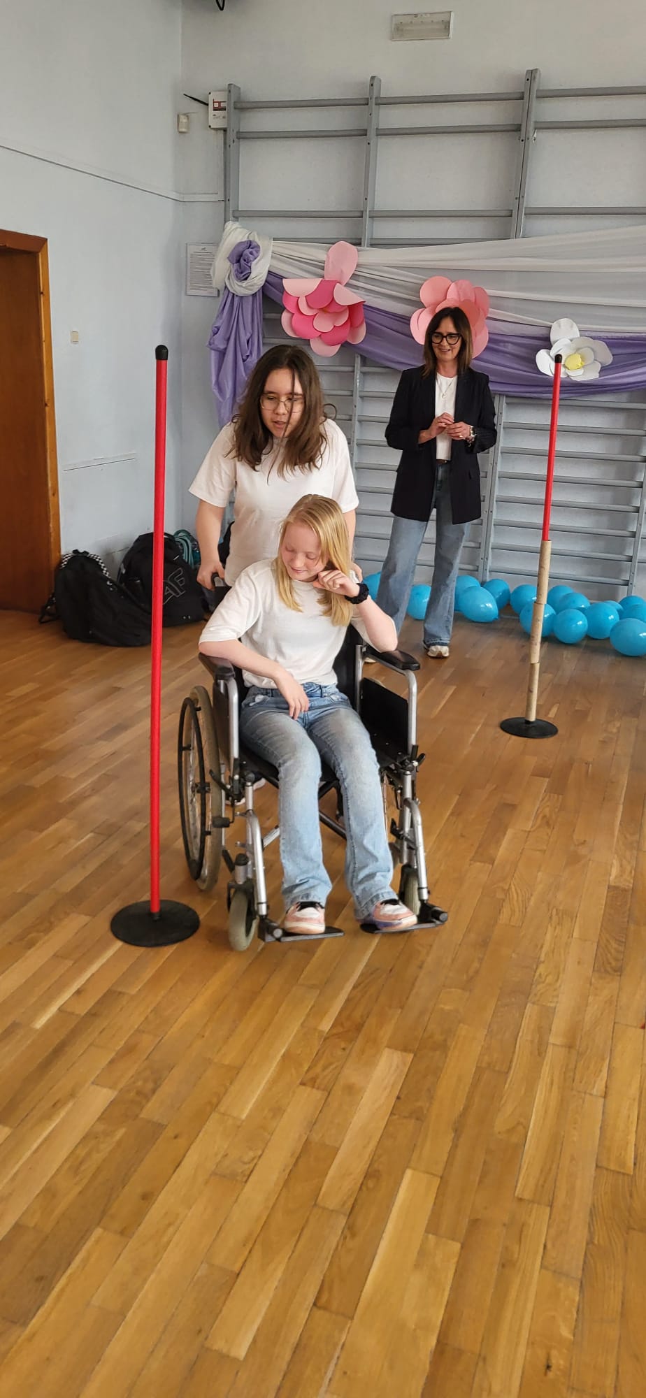 W ramach wydarzenia uczniowie brali udział w różnych aktywnościach, które miały na celu uwrażliwienie na potrzeby i trudności osób z niepełnosprawnościami oraz pokazanie, jak ważna jest empatia, zrozumienie i wzajemny szacunek. Przygotowano stacje zadaniowe, podczas których uczniowie mogli wykonywać różne ćwiczenia i doświadczać wybranych ograniczeń w codziennym funkcjonowaniu. Odbyły się również zajęcia muzyczne, rytmiczne, rozwijające współpracę, uważność i integrację. Dużym zainteresowaniem cieszyły się także zadania związane z poruszaniem się na wózku inwalidzkim, które pozwoliły uczniom lepiej zrozumieć wyzwania, z jakimi mierzą się osoby z ograniczeniami ruchowymi.