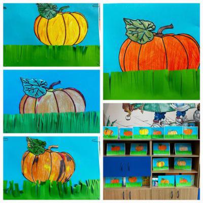 Dzieci zapoznały się z budową dyni, jej właściwościami odżywczymi, a także wieloma ciekawostkami. Nie zabrakło również dyniowych smakołyków, zabaw ruchowych i sensorycznych, a także wybuchowych eksperymentów. Dzieci uhonorowały ten dzień pomarańczowymi akcentami.