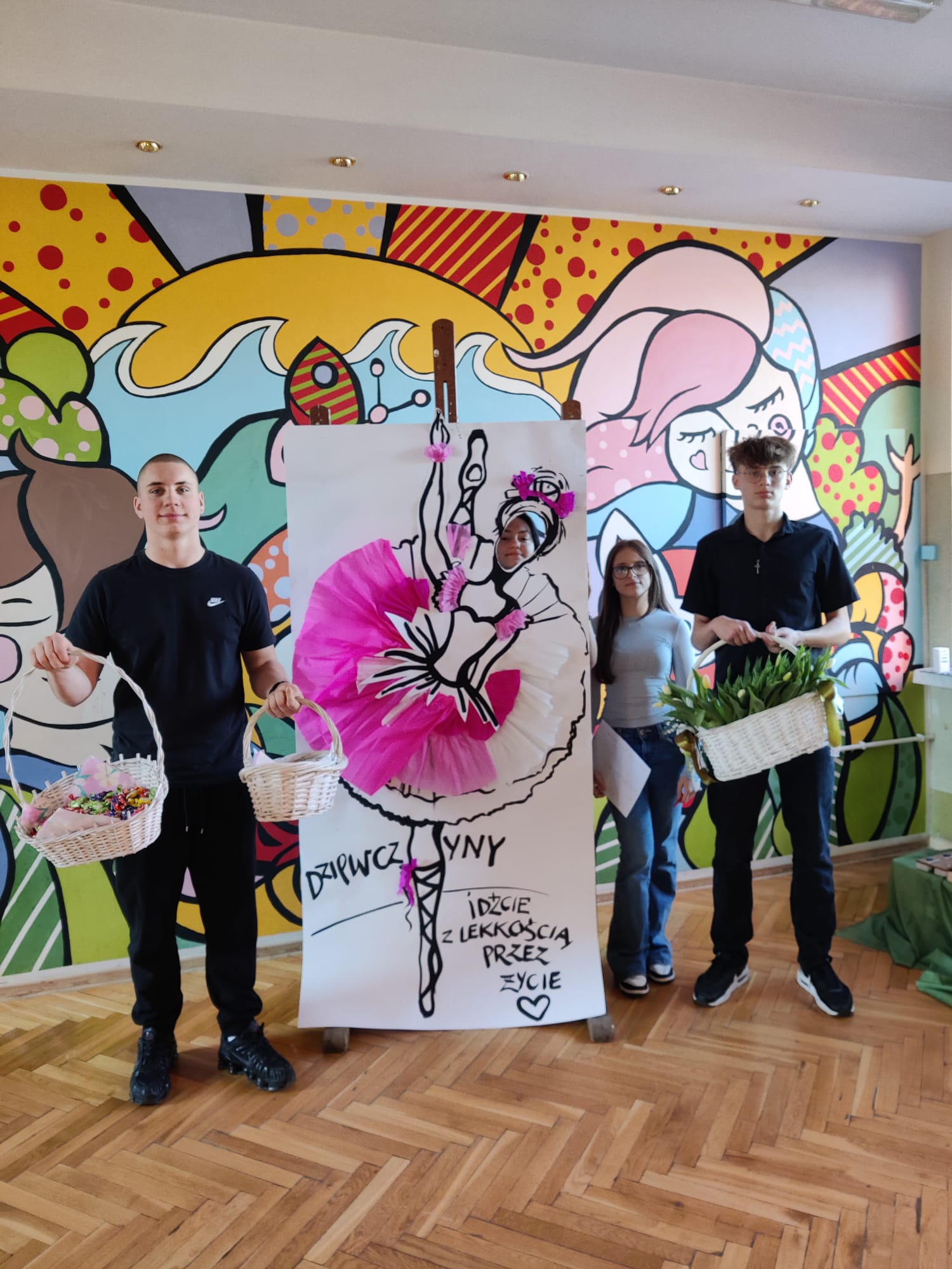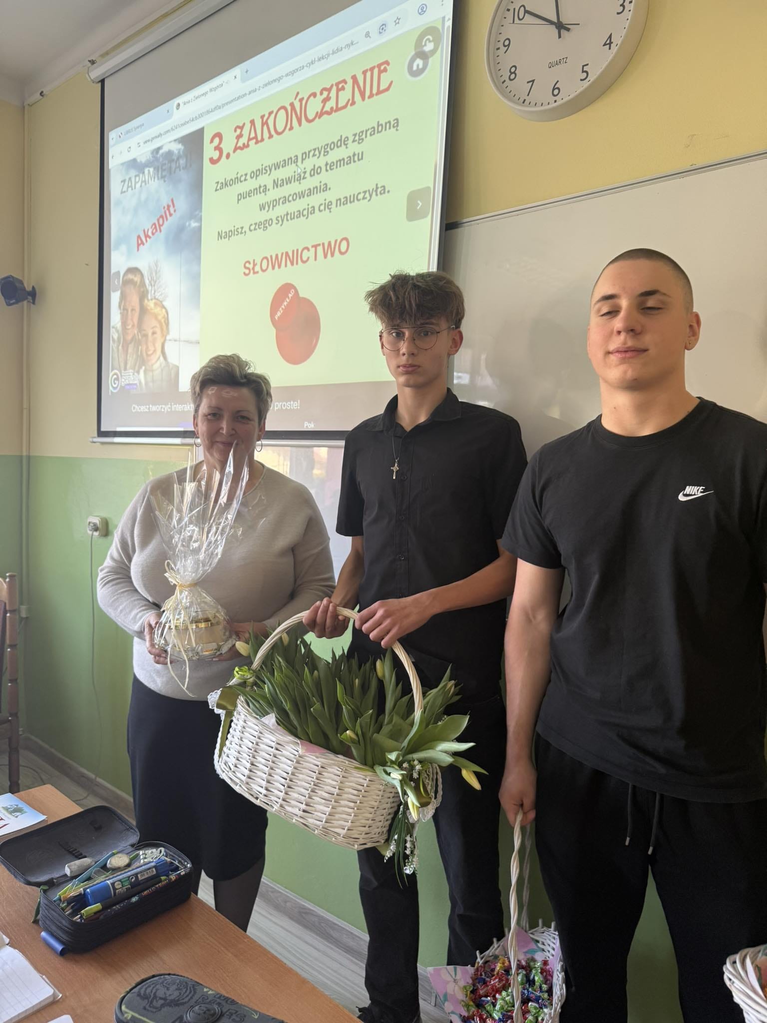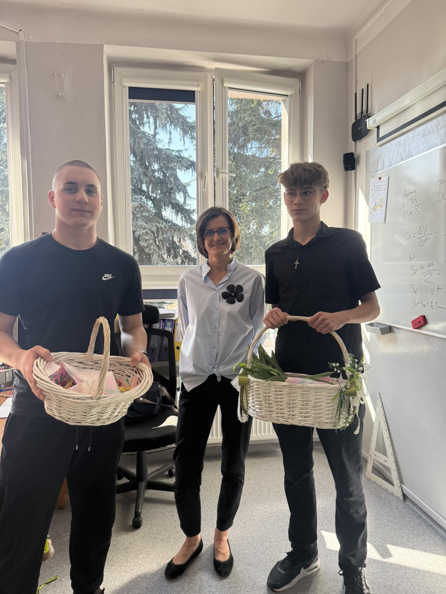 Samorząd uczniowski zadbał o miłą atmosferę i uśmiech na twarzach naszych Pań i Koleżanek, wręczając kwiaty i cukierki.