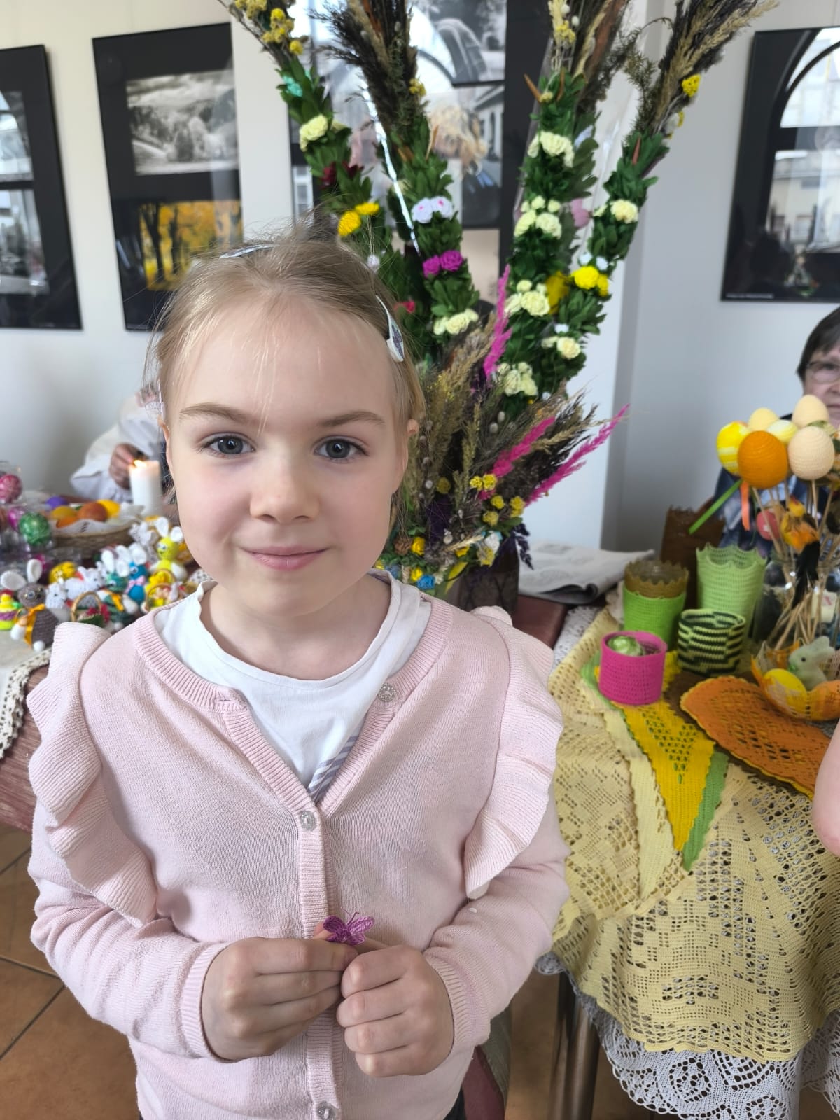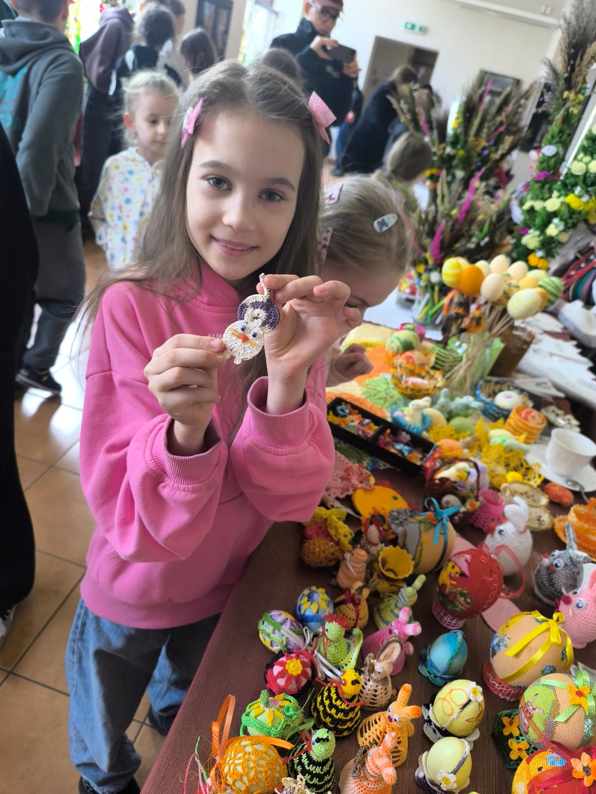 Klasa 1a wybrała się dziś do Muzeum Regionalnego, gdzie czekał na nas barwny kiermasz wielkanocny. Dzieci z ogromnym zainteresowaniem oglądały tradycyjne sposoby zdobienia pisanek oraz dawne techniki tworzenia palm. Podziwiały również haftowane serwetki, misternie wykonane pisanki, szydełkowe ozdoby do koszyczka, a także inne rękodzieła, które pokazywały, jak wiele pracy i serca wkładano kiedyś w przygotowania do świąt. To była wyjątkowa okazja, by zobaczyć z bliska piękno regionalnych tradycji.
