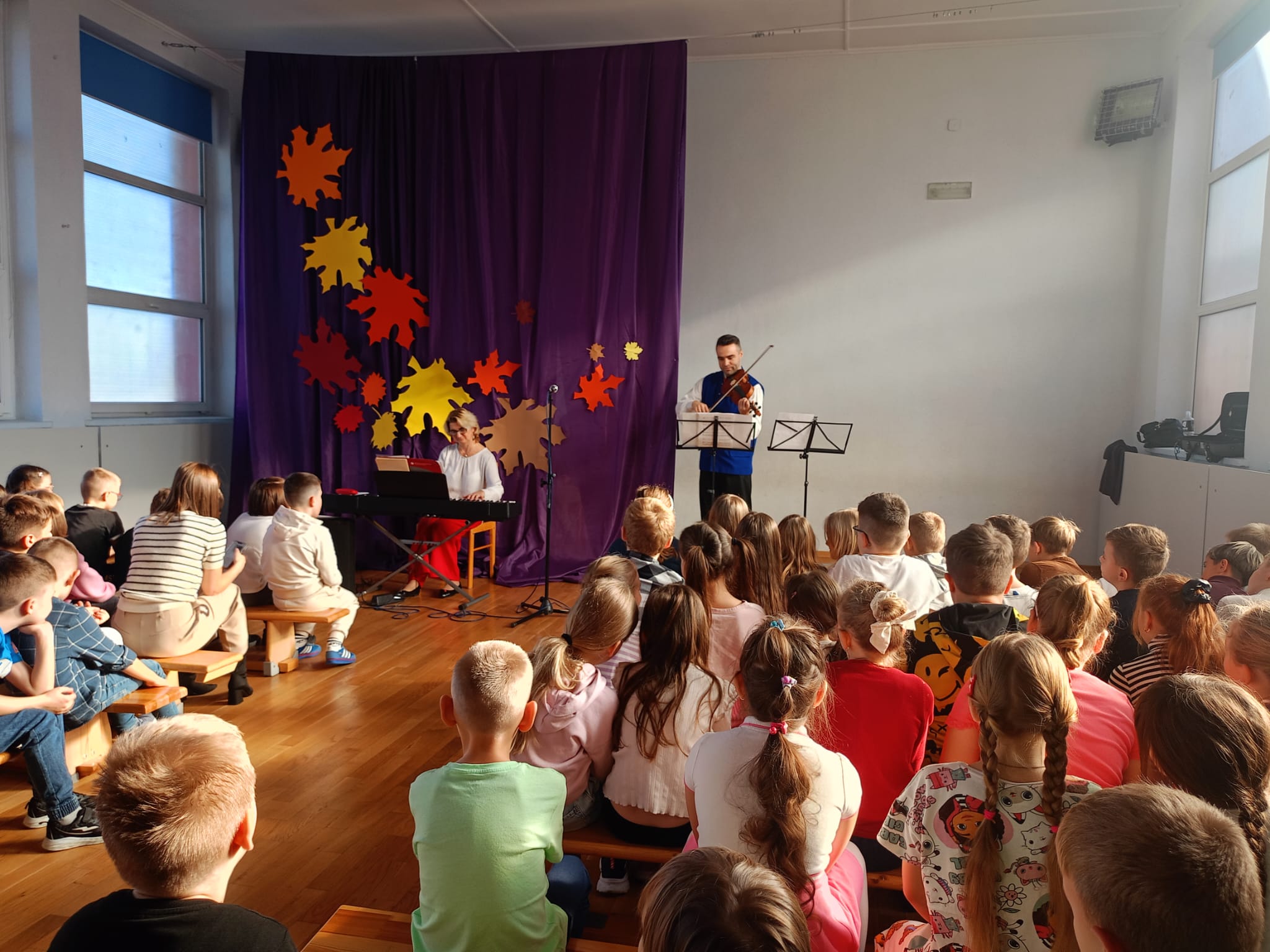 W czwartek uczniów klas 1–3 odwiedzili muzycy z Filharmonii Częstochowskiej z audycją „Polska Jedenastka – polska muzyka i poezja”.