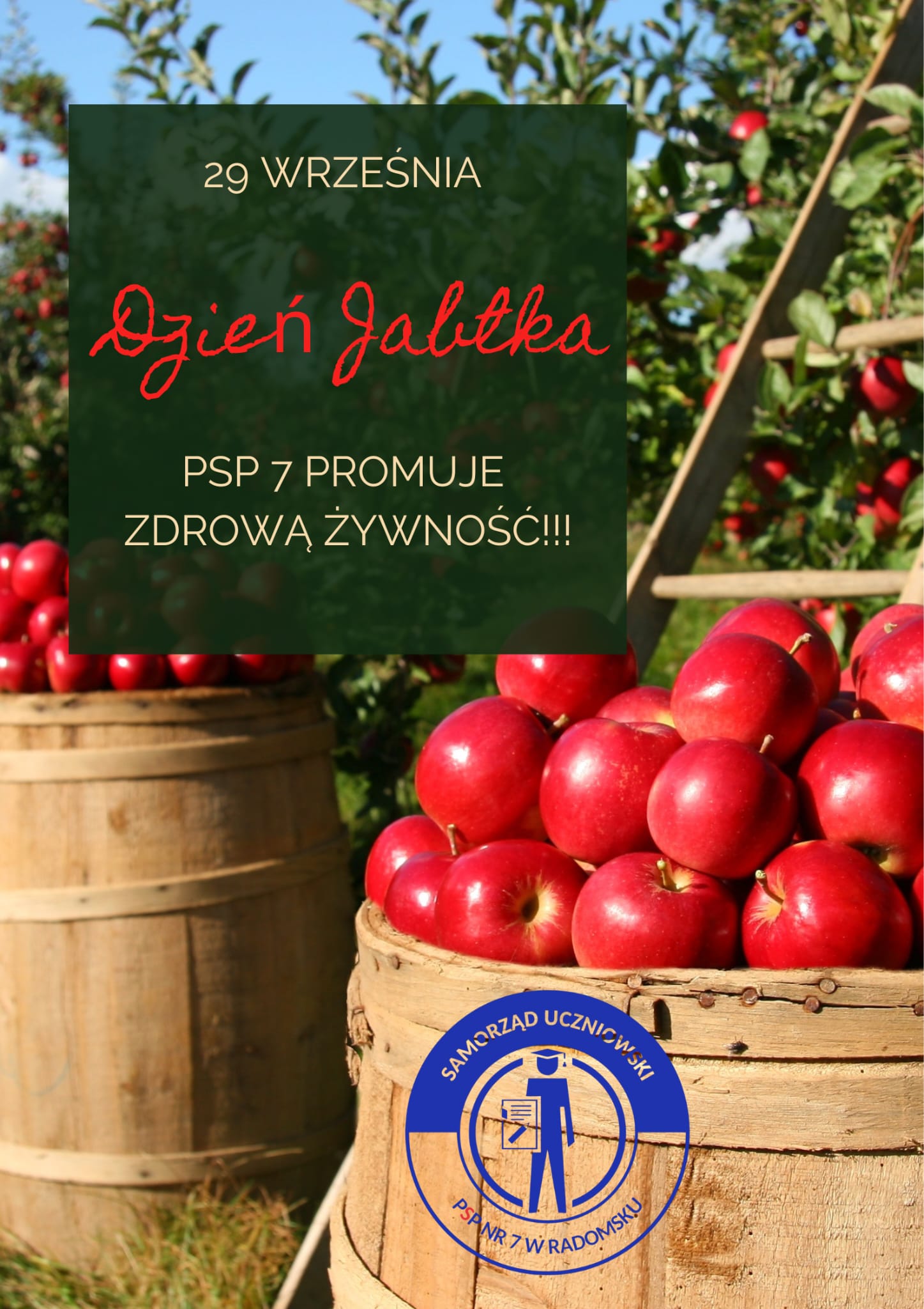 Samorząd Uczniowski Siódemki także promuje zdrową żywność rozdając całej społeczności szkolnej pyszne, soczyste, a przede wszystkim zdrowe jabłuszka.