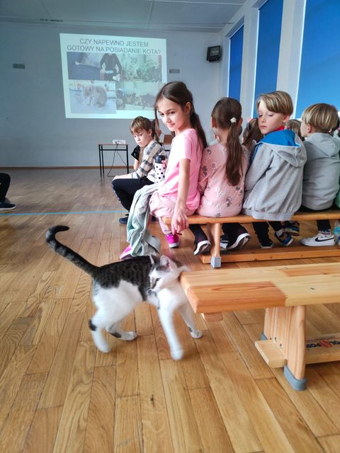 Do obchodów kociego święta obchodzonego na całym świecie 17 lutego włączyła się również nasza szkoła. Z tej okazji zaprosiliśmy Panią Anie Matuszczyk lekarza weterynarii ze swoim czworonożnym kocim przyjacielem Miauczką. Pani Ania w bardzo ciekawy sposób opowiadała dzieciom o czym należy pamiętać kiedy decydujemy się na kota, kiedy należy udać się do lekarza weterynarii, jak rozpoznać mowę ciała kota i wiele innych ciekawych wskazówek i informacji.