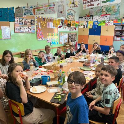 W ubiegłym tygodniu uczniowie klasy 2C rozpoczęli cykl zajęć o tematyce zdrowotnej. Zdobywali wiedzę dotyczącą budowy i działania ludzkiego organizmu oraz sposobów właściwego dbania o niego. Po opanowaniu wiedzy teoretycznej uczniowie wykonali plakaty promujące zdrowy tryb życia. Finalizacją zajęć było przygotowanie wspólnego zdrowego śniadania. Uczniowie samodzielnie według swoich upodobań wykonali kanapki z przyniesionych produktów.