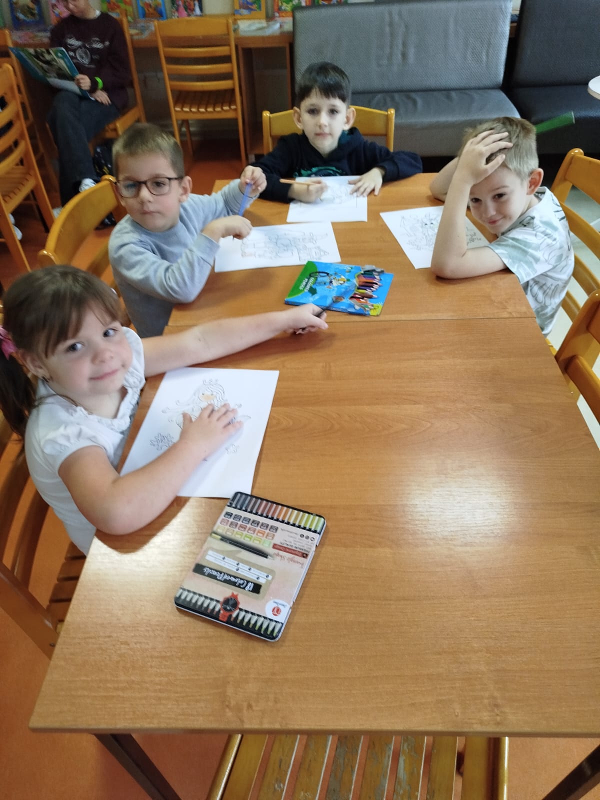 W dniach 16 - 17 października bibliotekę szkolną w PSP nr 7 odwiedziły przedszkolaki z Publicznego Przedszkola nr 1. Podczas wizyty dzieci miały okazję zapoznać się z zasadami panującymi w bibliotece i wzięły udział w różnorodnych, ciekawych zajęciach bibliotecznych. Uczestniczyły także w zabawach ruchowych i plastycznych, musiały rozwiązać wiele zagadek dotyczących biblioteki, jak również treści bajek i baśni. Przedszkolaki z wielkim zaangażowaniem uczestniczyły w zorganizowanych dla nich zajęciach bibliotecznych i przed wyjściem pięknie podziękowały paniom bibliotekarkom za ciekawie spędzony czas